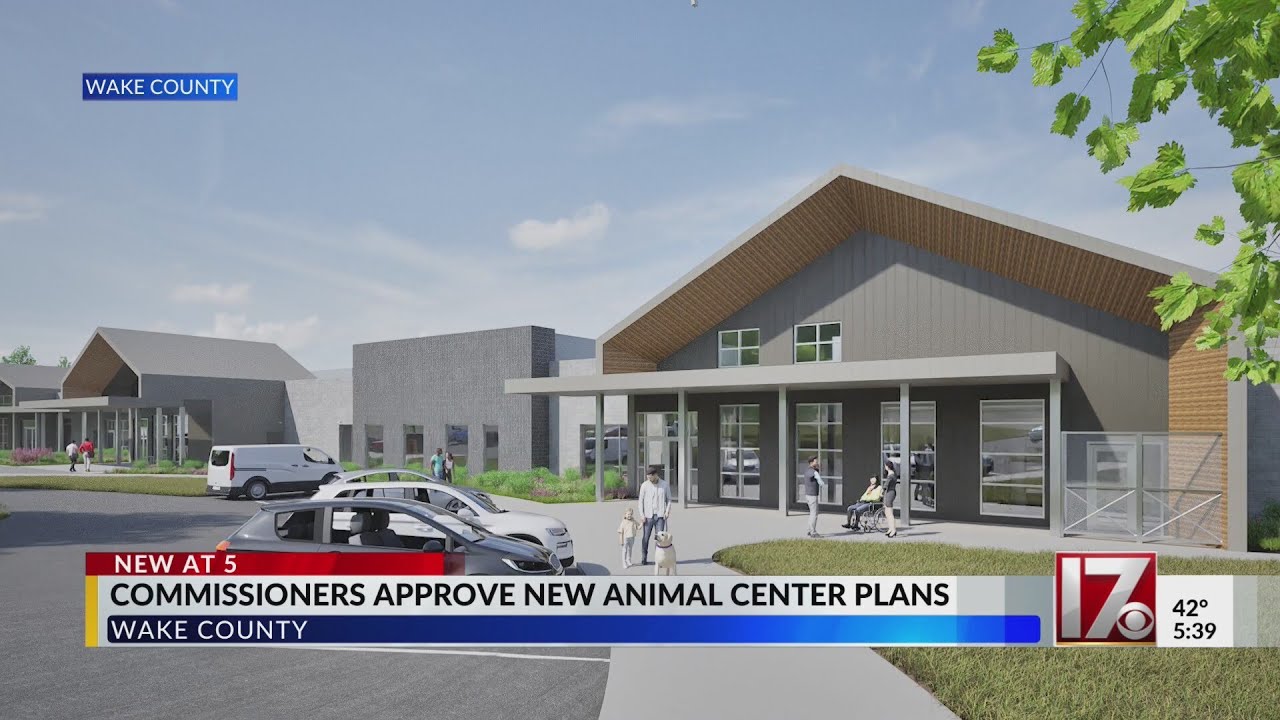 The new Animal Center will be located at the intersection of Auburn-Knightdale Road and Battle Bridge Road in east Raleigh. The facility will feature 56,400 square feet of interior space and 8,000 square feet of exterior dog kennels. It will allow the facility to house up to 265 dogs and 184 cats and small animals, more than doubling the County’s current capacity for dogs and significantly increasing space for cats and small animals.